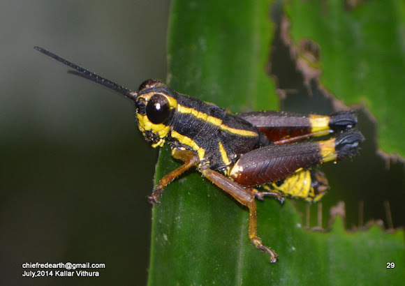 Obscure Bird Grasshopper | Project Noah from lh5.ggpht.com These insects are very common here in the spring. Black grasshoppers with red stripe. It was shiny black with orange and yellow spots running down its back, orange stripes on its belly, and orange highlights on its head and thorax. Malaysia, invertebrates, grasshoppers, insects, wildlife, animals, arthropods, peninsular malaysia, west malaysia. They live throughout florida and from north in the nymph stage they look very different than as adults. Dark stripe from eye to forewing, small white streak on forewing; Black yellow striped grasshopper high … перевести эту страницу. Since the yellow grasshoppers (easter lubber grasshoppers) reproduce in such great numbers they can strip a garden or decorative plants rather quickly.